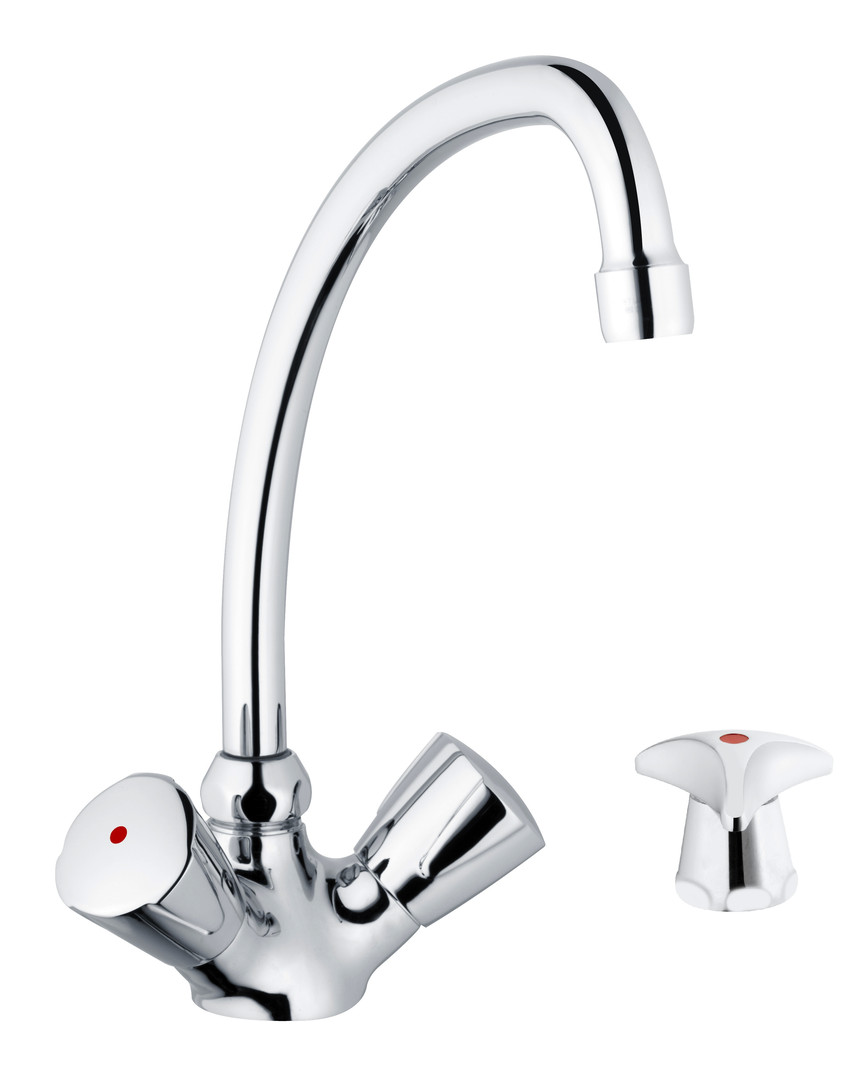Schulte Spültisch-Zweigriff-Armatur classic-line_2 Ausladung 200mm, glatter Körper, HU-Rohrauslauf, verchromt, Trecorngriff W326845