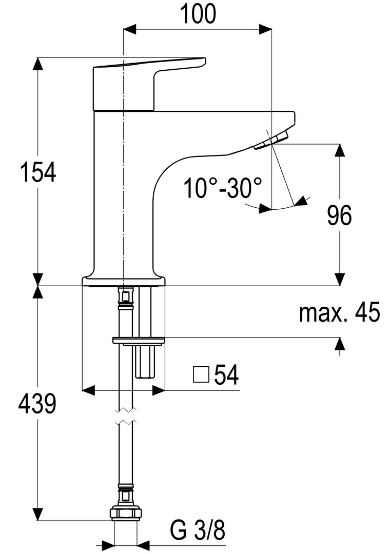 Schulte Standventil alpha_400 mattschwarz, Ausladung 100mm, Griff Metall W327218