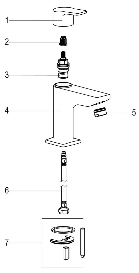 Keramik-Oberteil 1/2" 90°, Werkstoffe nach TrinkwV und UBA, Flexschläuche 3/8" DIN DVGW, Strahlregler Durchflussklasse A, schwenkbar, für Standmontage, mit Befestigungssatz