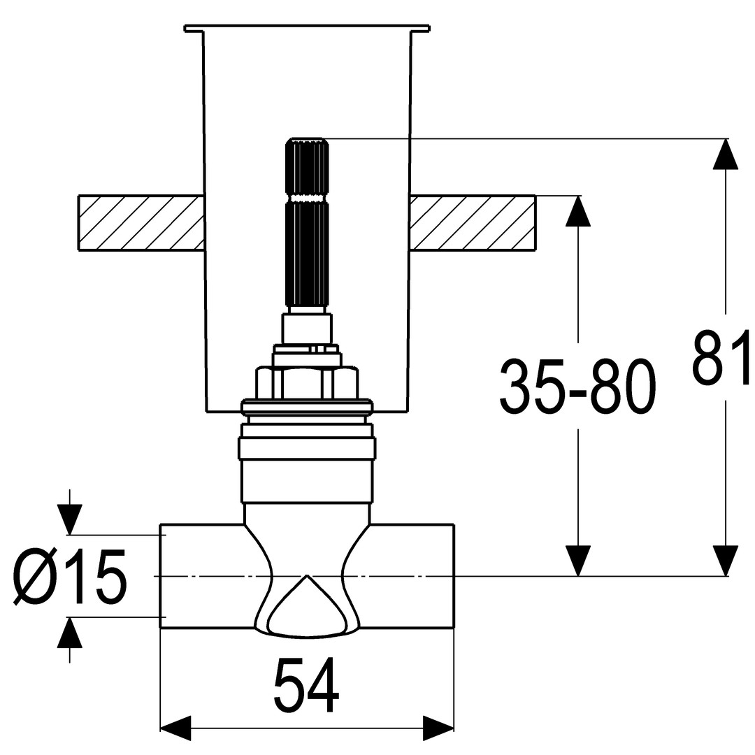 Schulte UP-Ventil-Grundkörper mit Lötanschluss 15 mm, verlängerter Verzahnung W327611