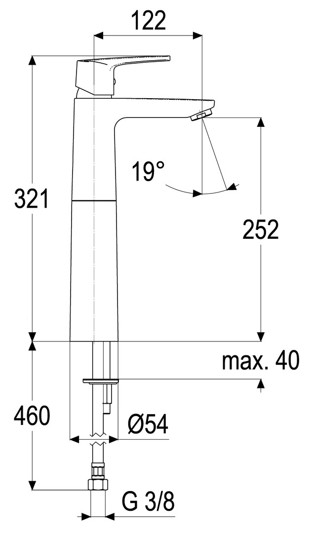 | Aufbauhöhe Unterkante Hahnauslass | 252 mm |
