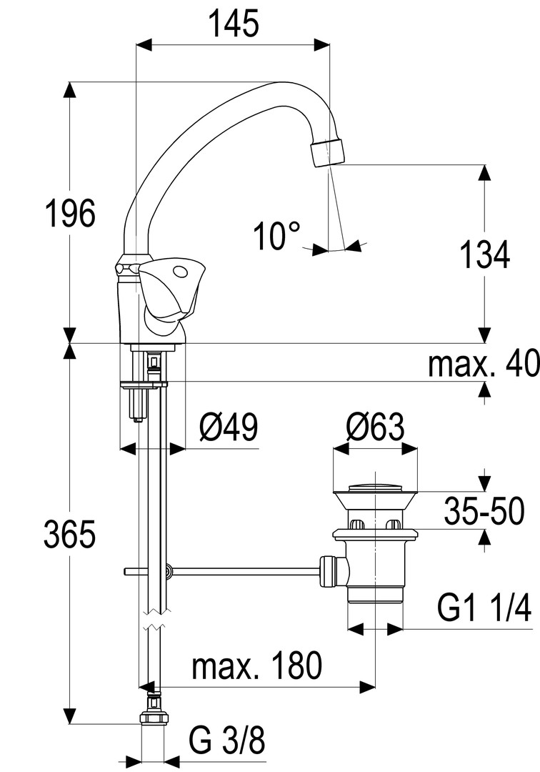 | Aufbauhöhe Unterkante Hahnauslass | 141 mm |
