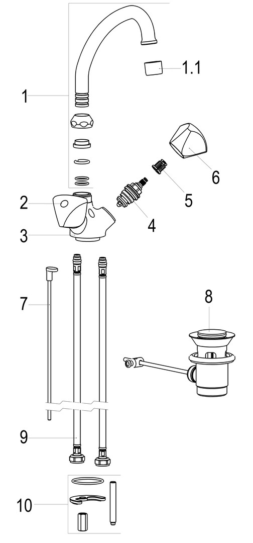 Schulte Waschtisch-Zweigriff-Armatur classic-line_2 Ausladung 145mm, schwenkbar, mit Ablaufgarnitur, verchromt, Trecorngriff W327071