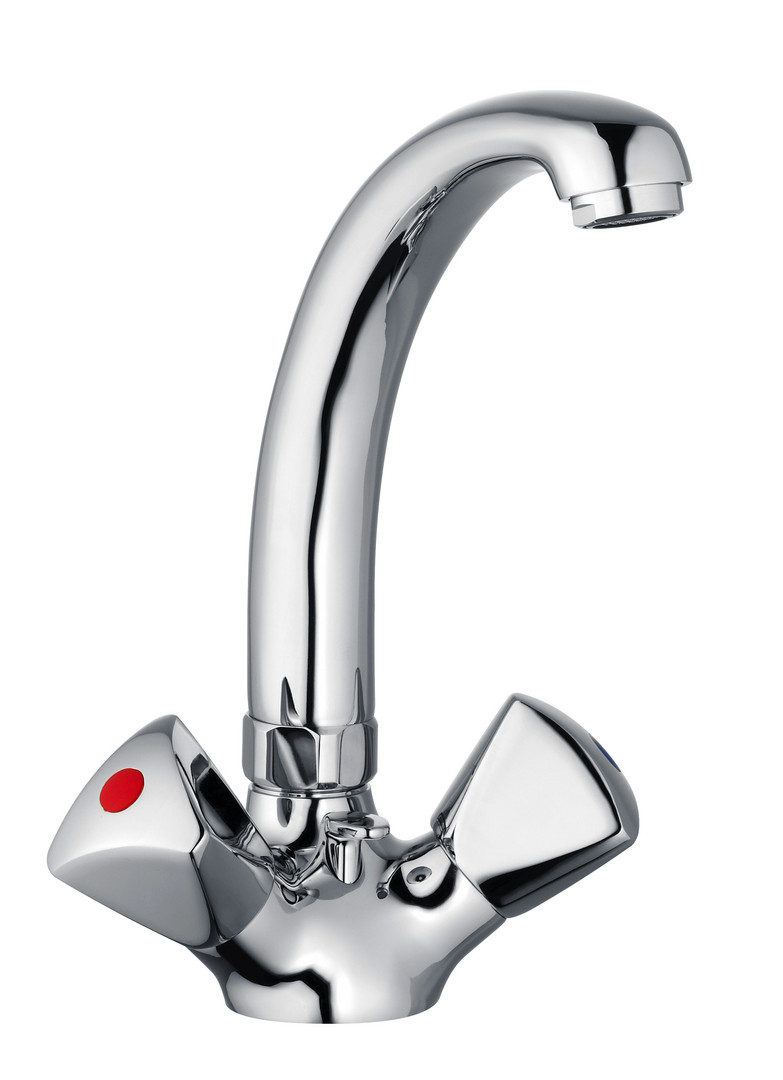Schulte Waschtisch-Zweigriff-Armatur classic-line_2 ND, Ausladung 120mm, versenkbare Kette, Gussauslauf, verchromt, Trianongriff