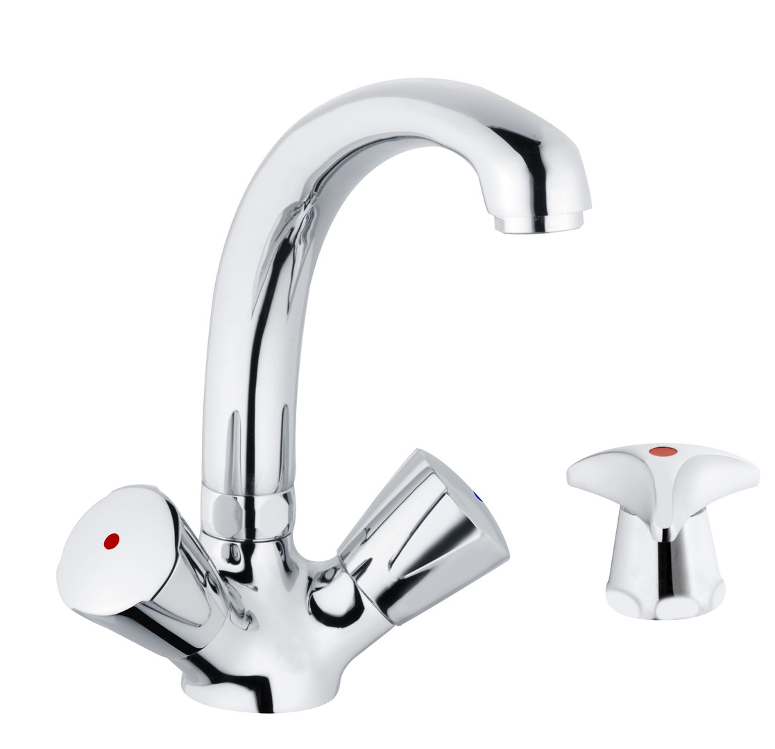 Schulte Waschtisch-Zweigriff-Armatur classic-line_2 ND, Ausladung 180mm, schwenkbar, Ablaufgarnitur, verchromt, Trecorngriff