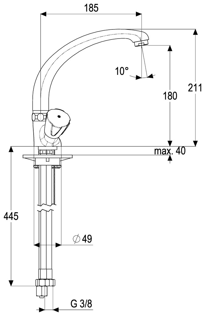 | Aufbauhöhe Unterkante Hahnauslass | 181 mm |