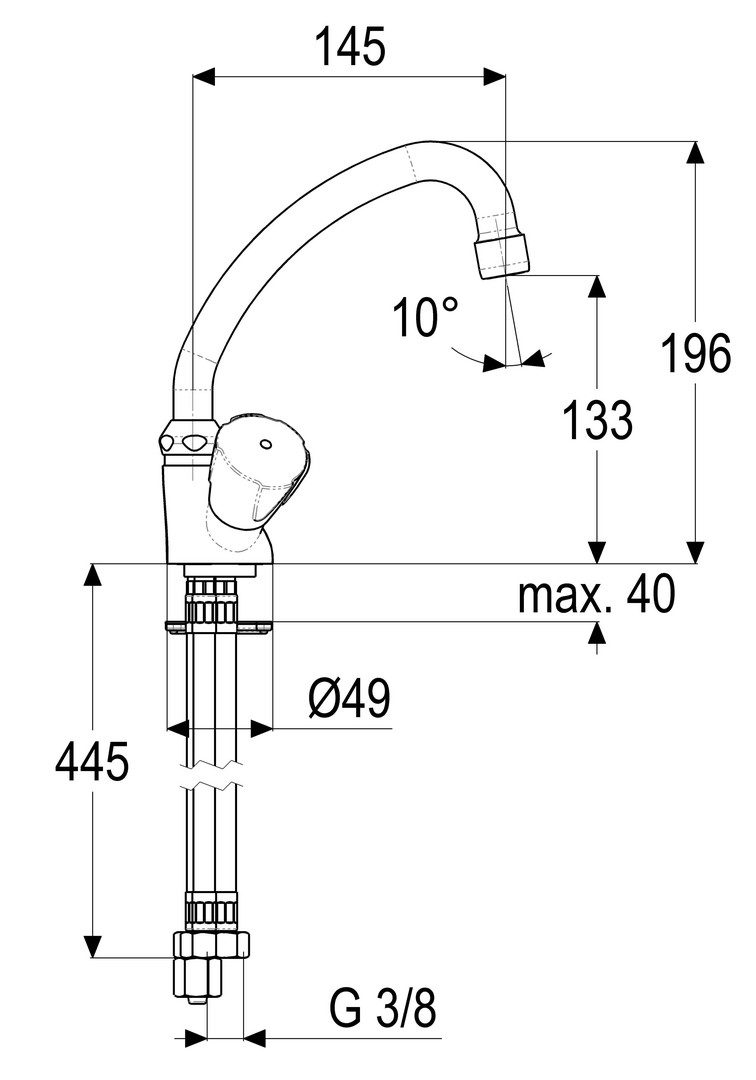 | Aufbauhöhe Unterkante Hahnauslass | 140 mm |