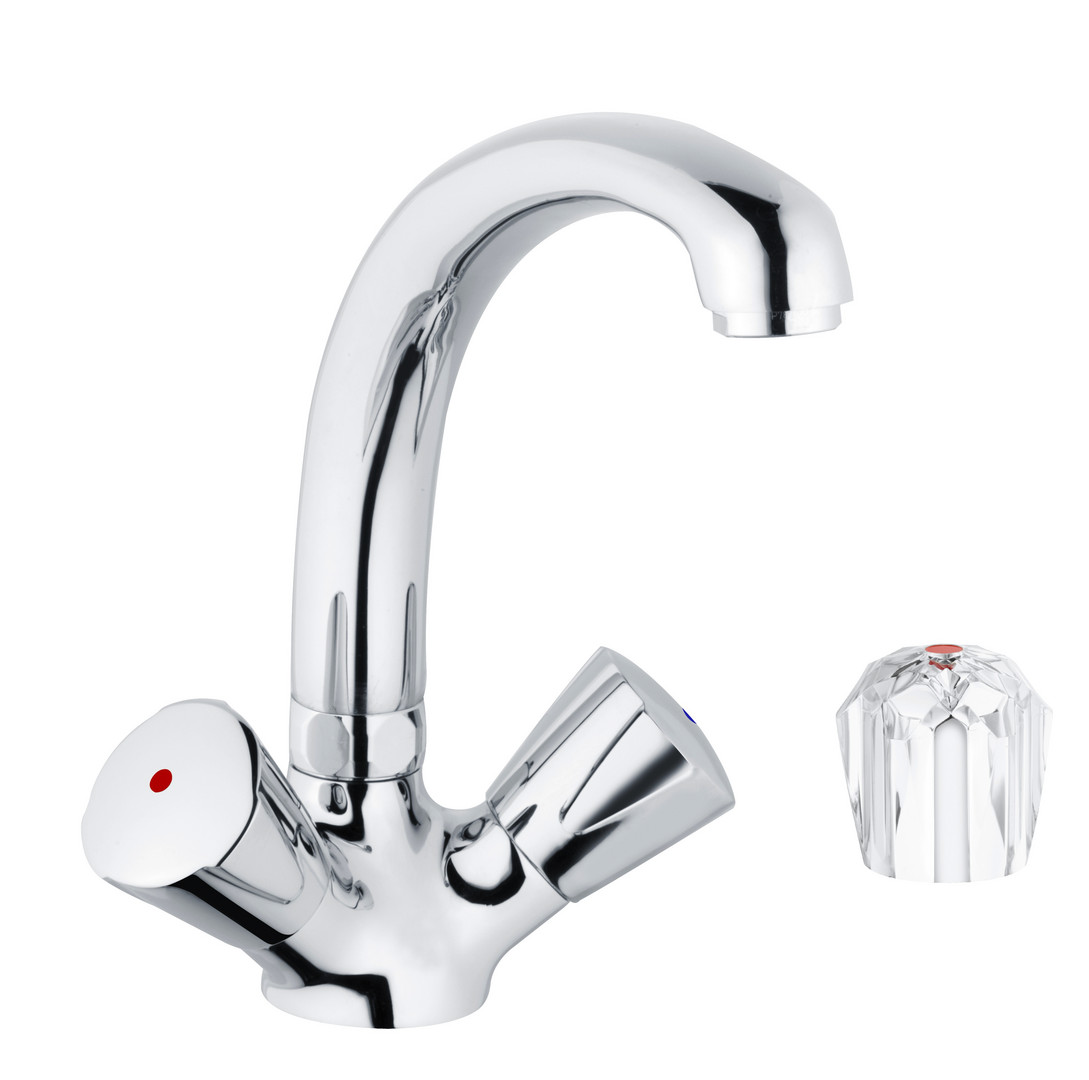 Schulte Waschtisch-Zweigriff-Armatur classic line Ausladung 180mm, schwenkbar, Gussauslauf, Ablaufgarnitur, verchromt, Classicgriff W327091