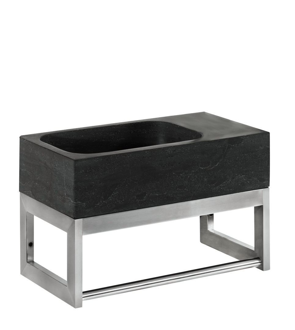 Werkstoff kalkhaltiger Naturstein, für Wandmontage, mit Edelstahl-Wandgestell, mit Hahnloch, links oder rechts zu montieren, ohne Überlauf