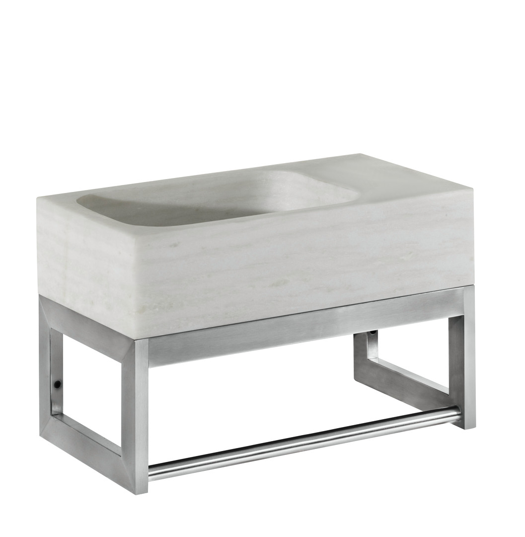 Werkstoff kalkhaltiger Naturstein, für Wandmontage, mit Edelstahl-Wandgestell, mit Hahnloch, links oder rechts zu montieren, ohne Überlauf