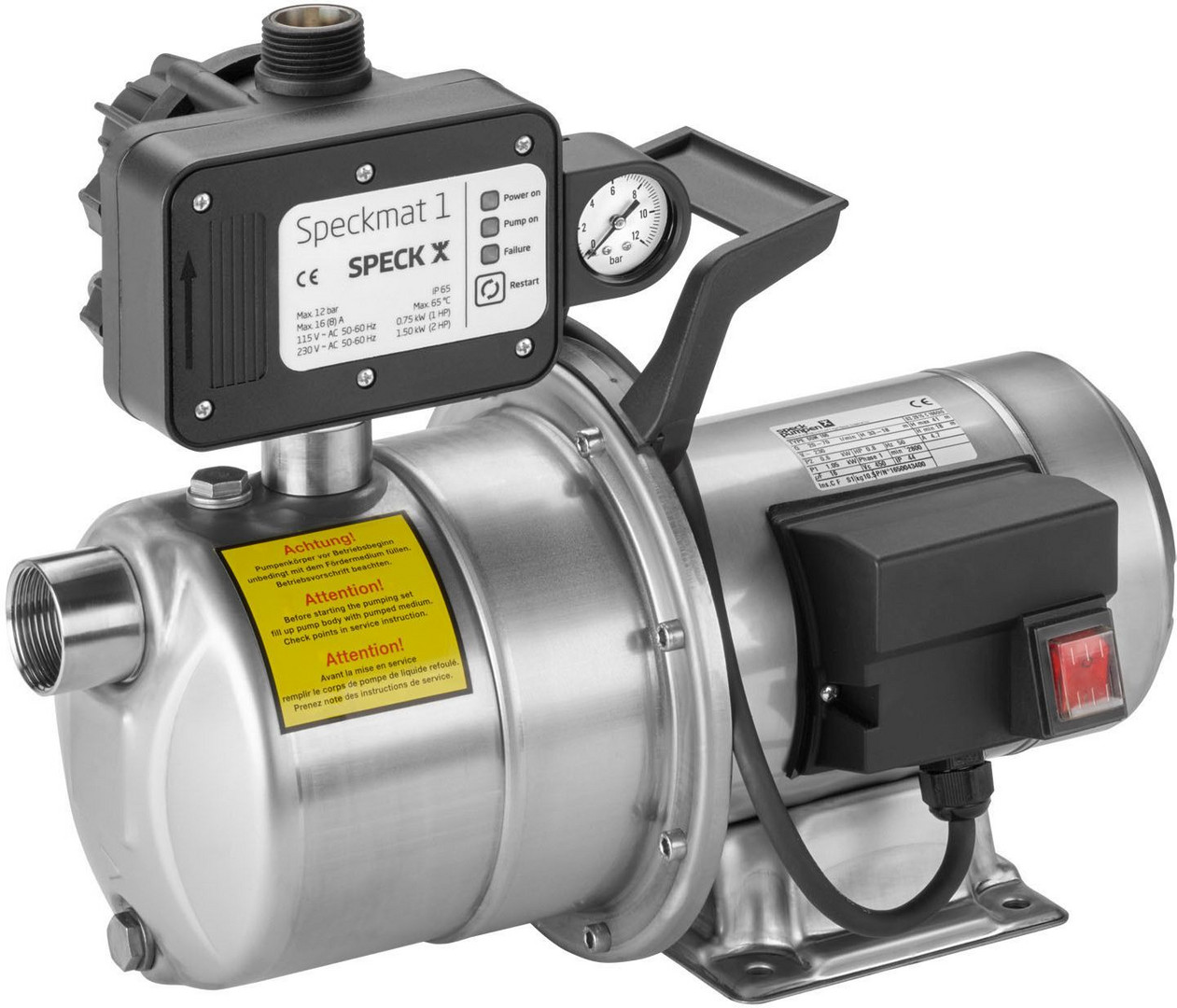 mit Schaltgerät Speckmat 1, zur automatischen und druckabhängigen Einschaltung sowie strömungsabhängiger Anschaltung, mit integriertem Trockenlaufschutz
