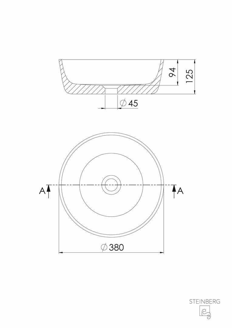Steinberg Aufsatzwaschtisch Serie 540 d= 380x125mm, dark pearl, glossy white W49434