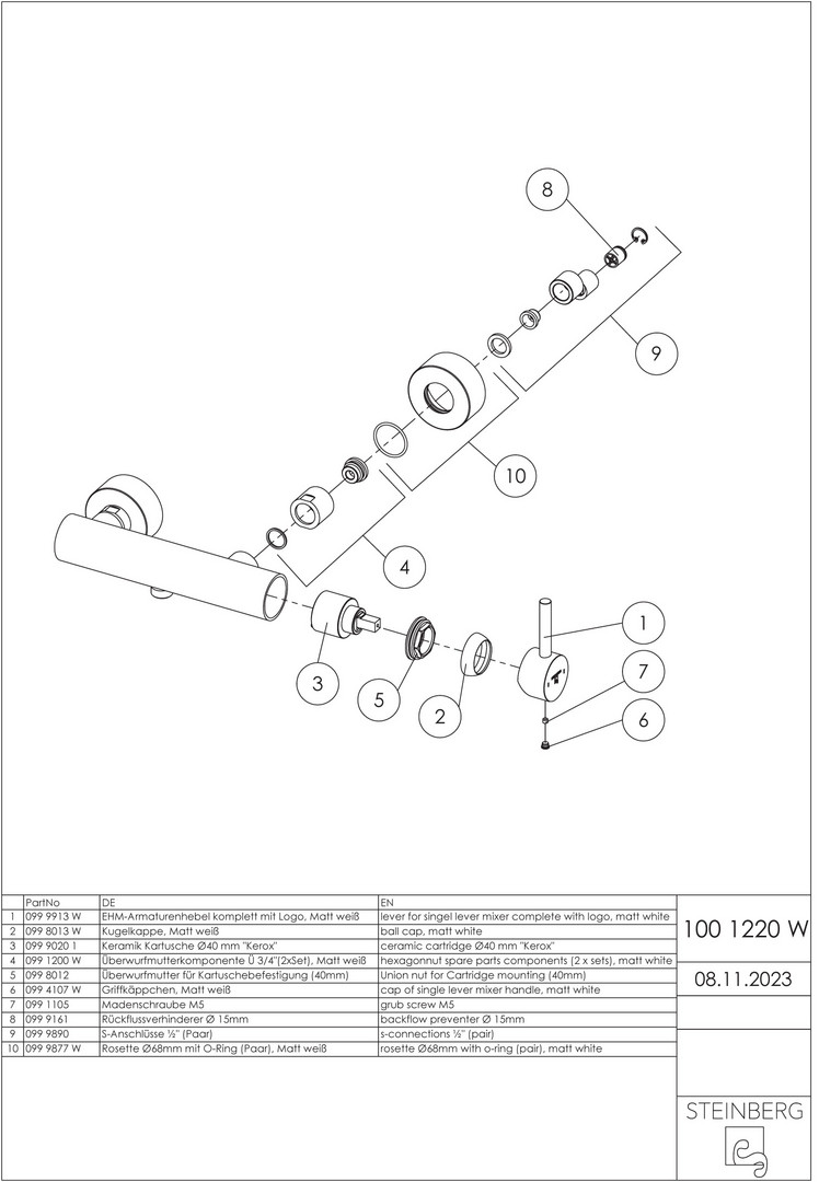 Steinberg Brause-Einhebelmischer Serie 100 AP, Matt White