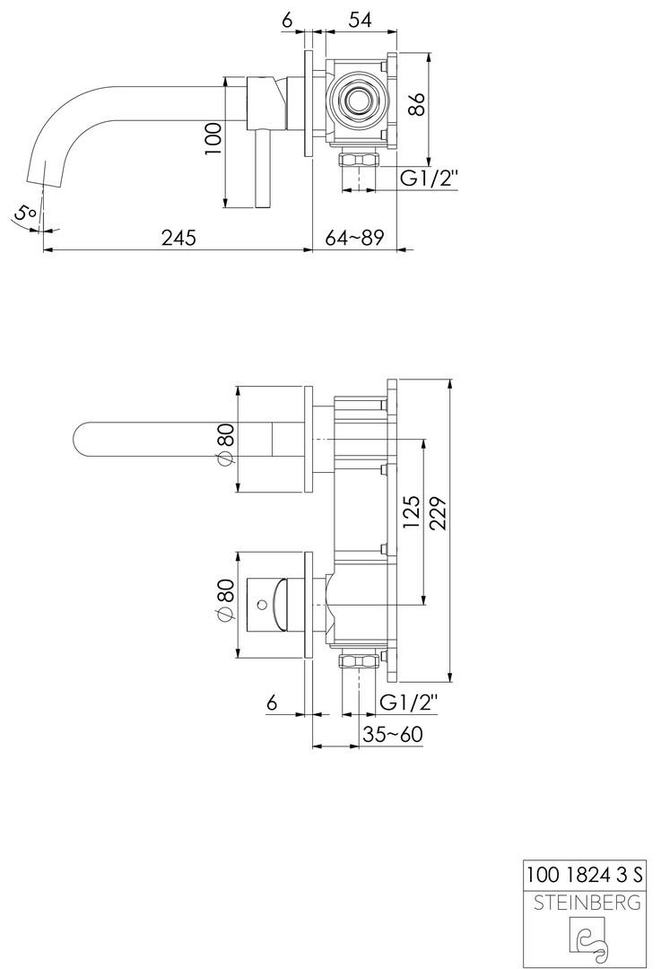 Steinberg Fertigmontageset Serie 100 Waschtisch-Einhebelmischer, Wandmontage, Ausladung 245 mm, chrome W323573
