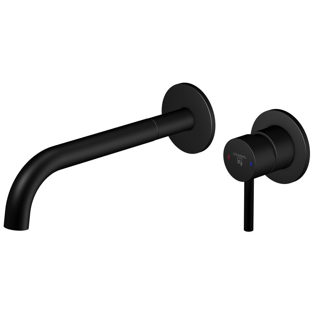 Steinberg Fertigmontageset Serie 100 Waschtisch-Einhebelmischer, Wandmontage, Ausladung 245 mm, matt black