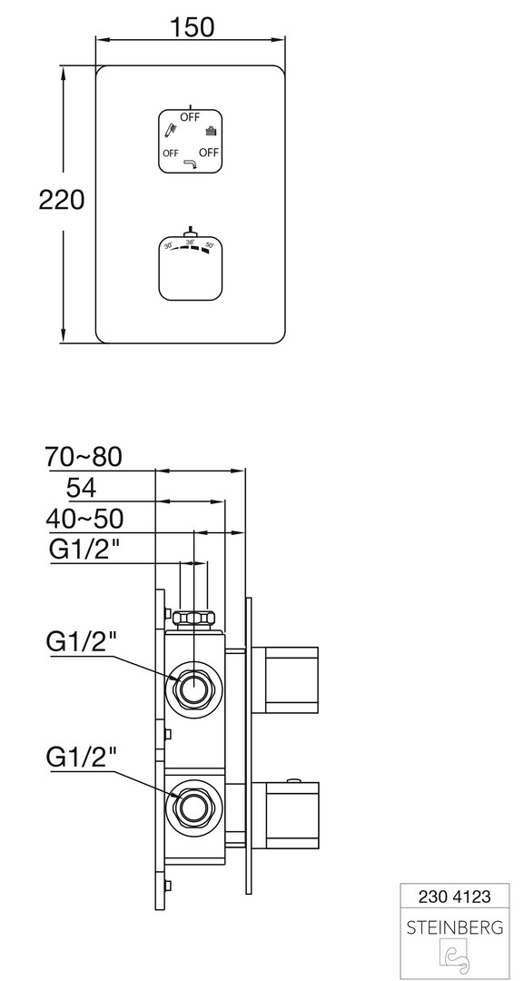 Steinberg Fertigmontageset Serie 230 UP-Thermostat, 3-Wege Umsteller, chrom