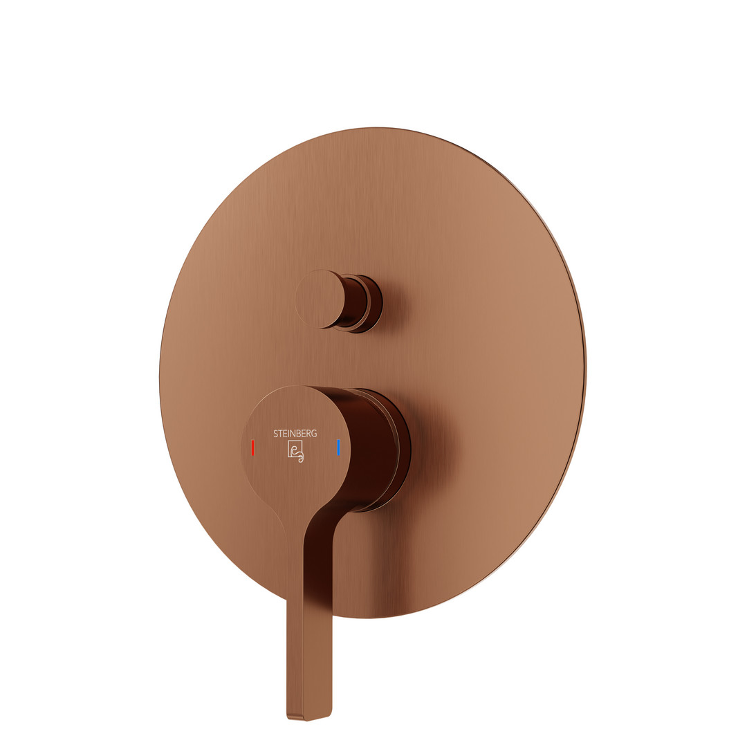 Steinberg Fertigmontageset Serie 280 für Wanne/Brause-Einhebelmischer, mit Abdeckplatte d= 185mm, mit Umsteller, brushed copper