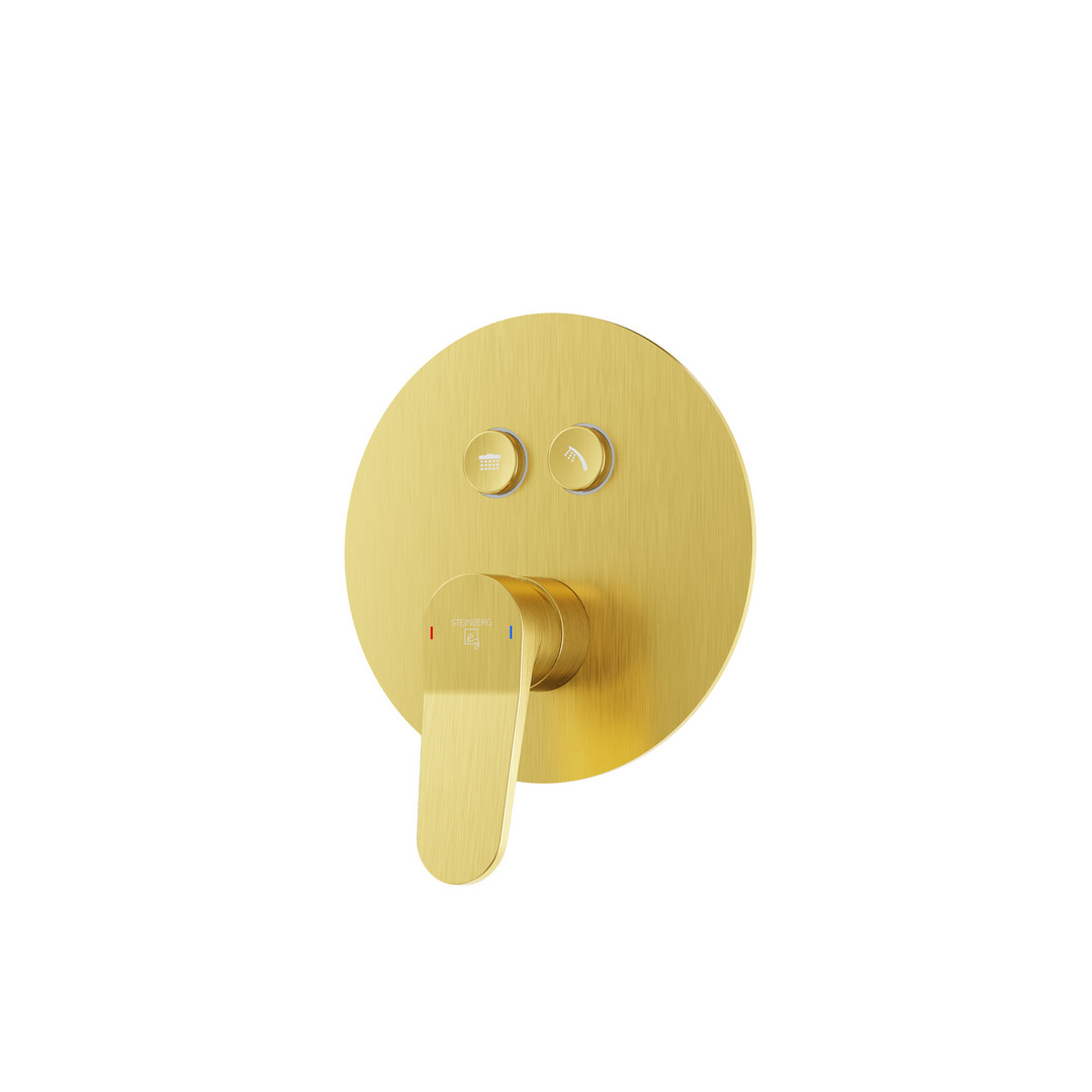 Steinberg Fertigmontageset UP-Wanne-/Brause-Einhebelmischer, Wandmontage, rund, brushed gold