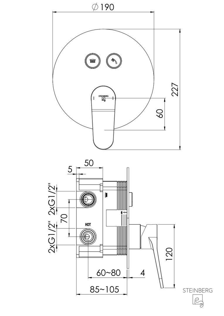 Steinberg Fertigmontageset UP-Wanne-/Brause-Einhebelmischer, Wandmontage, rund, matt black W322974