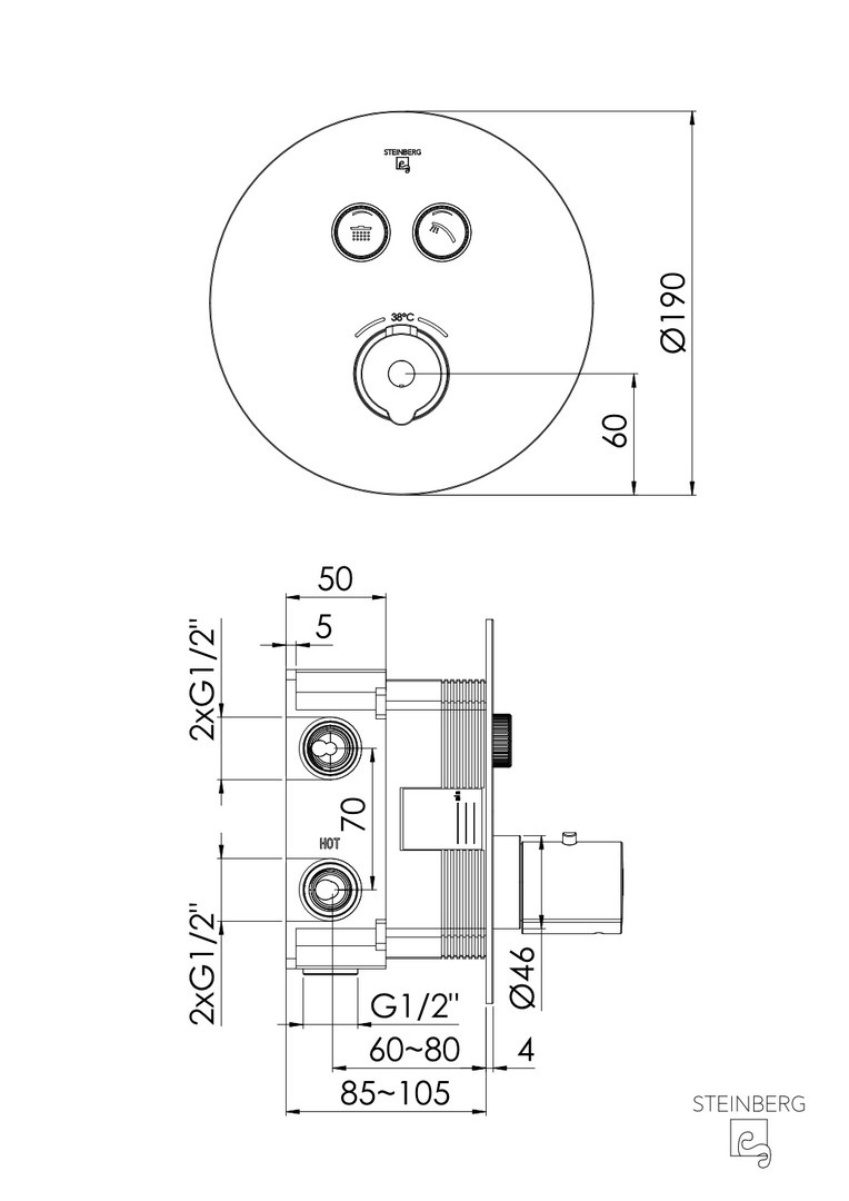 Steinberg Fertigmontageset Unterputzthermostat, Wandmontage, rund, chrom W323004