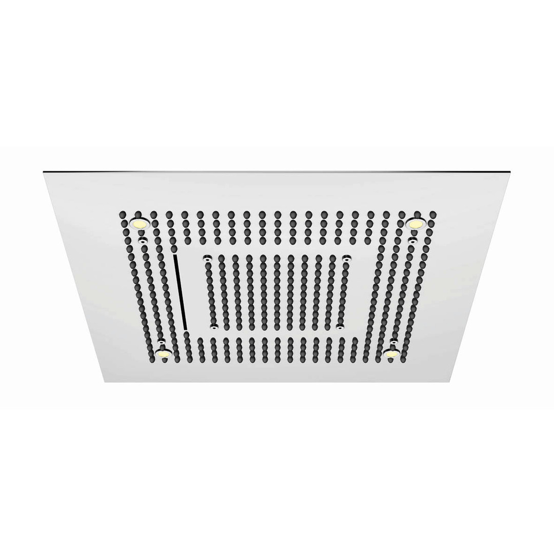 3 Strahlarten, für Deckeneinbau komplett mit Einbaurahmen, mit Easy-clean System, Beleuchtung mit 4 LED Lampen (weiß), Schutzklasse IP44, Netzteil 12 V, Nennstrom <= 30 mA, Durchflussmenge ab 15,5/19,9/24,4 l/min-3 bar
