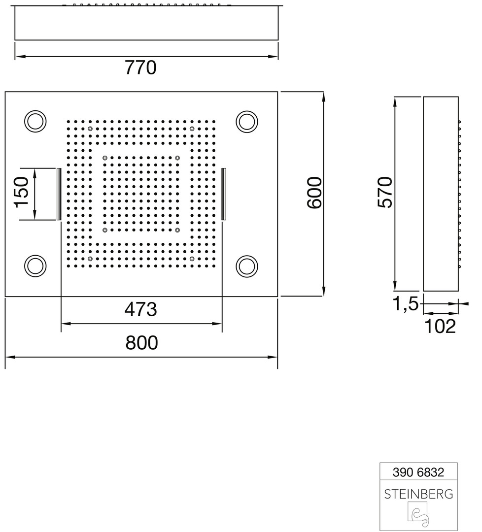 Steinberg Regenpaneel Serie 390 Sensual Rain 600x800mm, mit LED, für Deckeneinbau, matt black