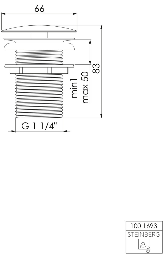 Steinberg Schaftventil Serie 100 1 1/4", für Waschtische ohne Überlauf, chrome
