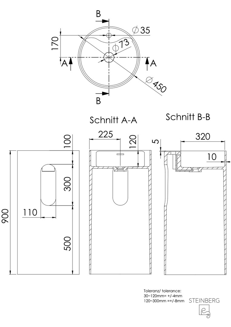 Steinberg Standwaschtisch Serie 445 d= 450x900mm, matt white