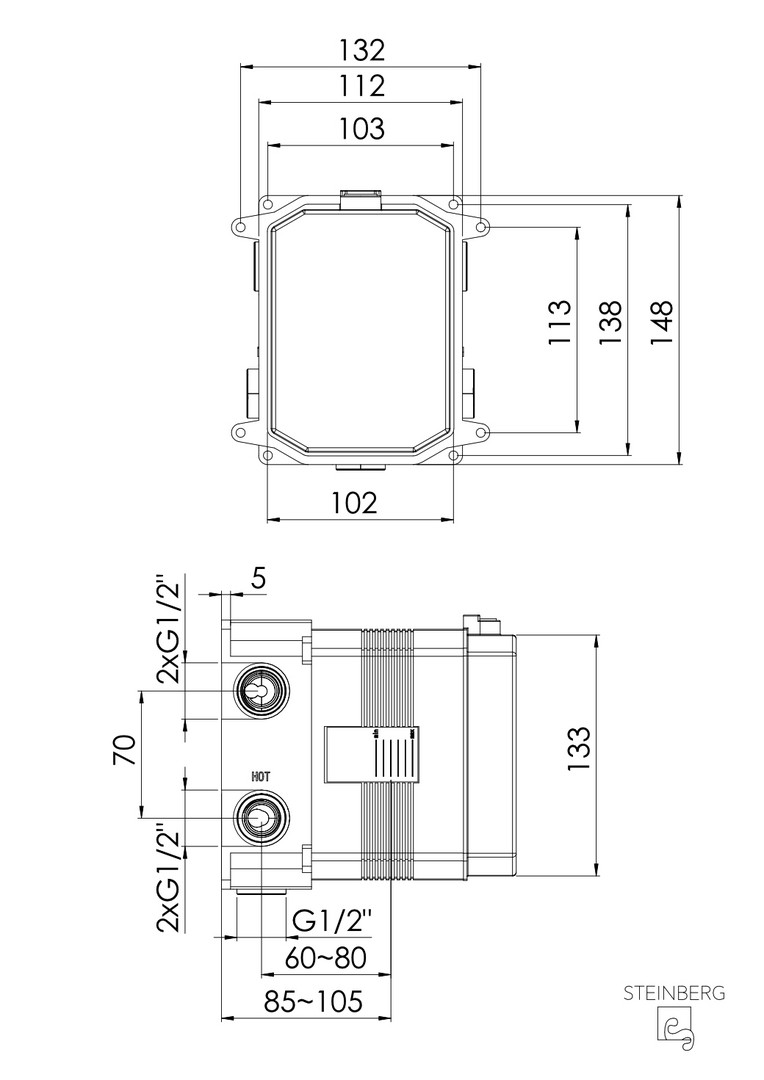 Steinberg UP-Einbaukörper pushtronic/slidetronic 1/2", für 2 Verbraucher