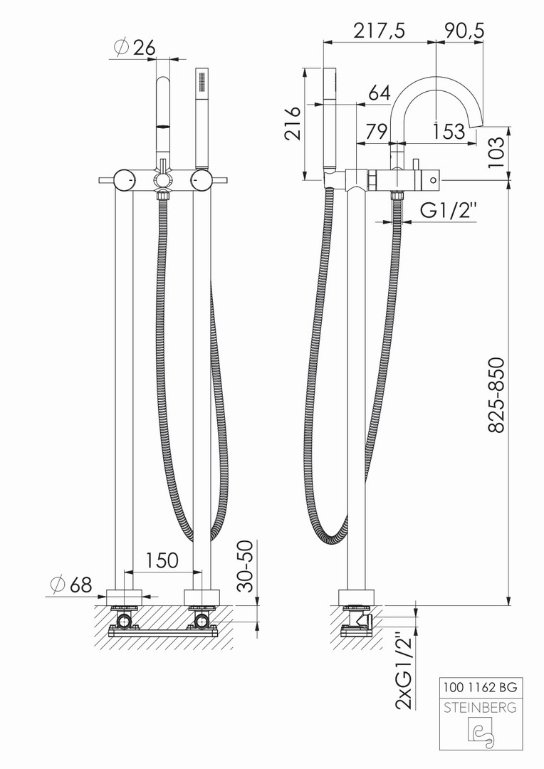 Steinberg Wannen-Einhebelmischer Serie 100 Ausladung 231mm, freistehende Montage, Matt Black W323522