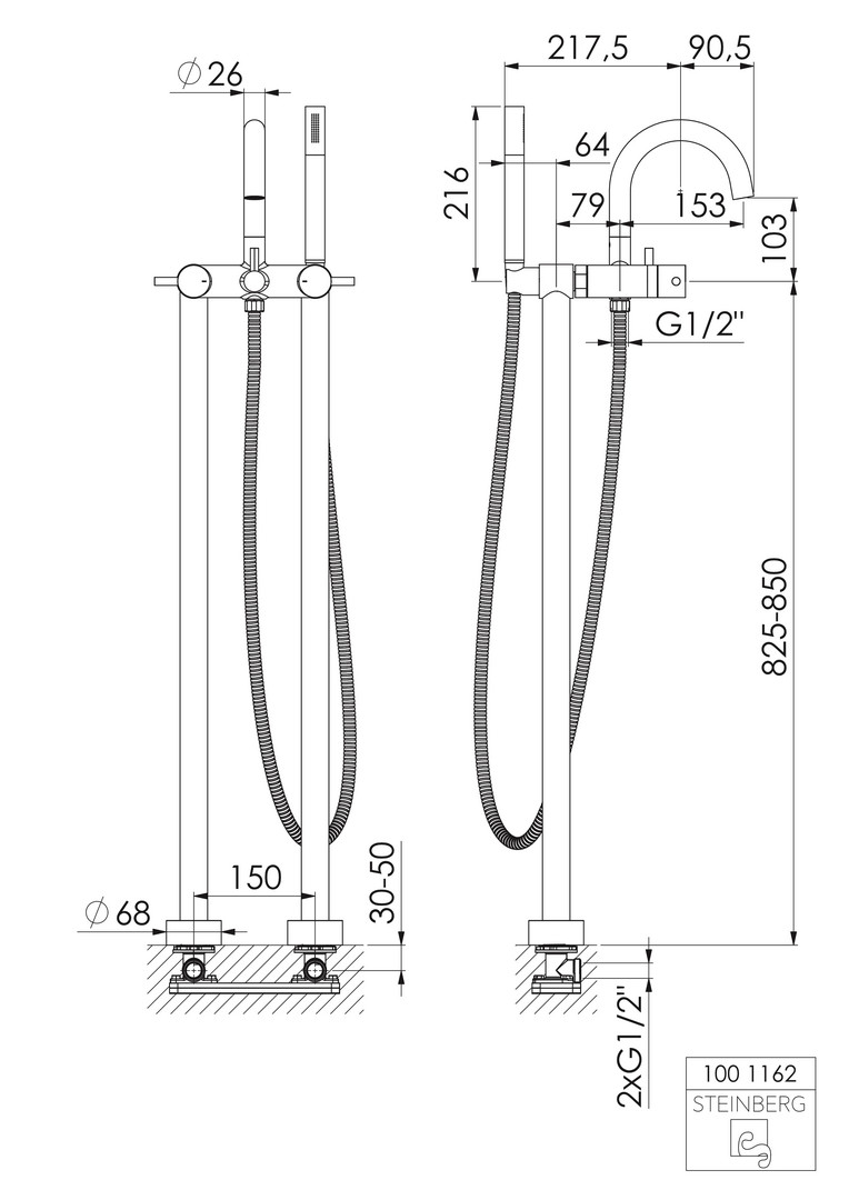 Steinberg Wannen-Einhebelmischer Serie 100 Ausladung 231mm, freistehende Montage, chrome W323518