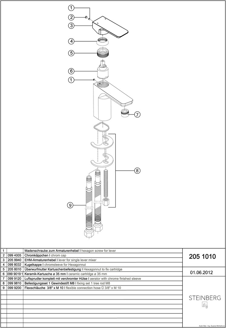 Steinberg Waschtisch-Einhebelmischer Serie 205 Ausladung 120 mm, ohne Ablaufgarnitur, chrom