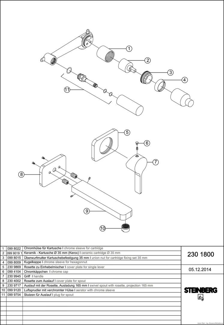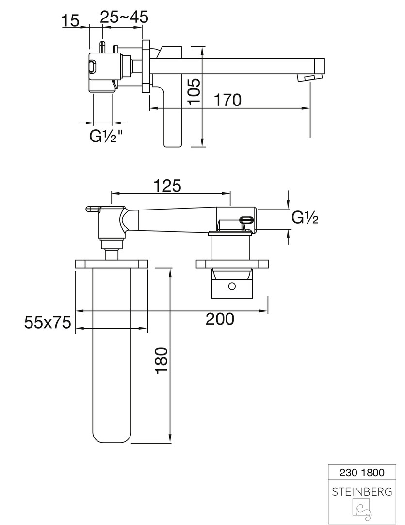 Steinberg Waschtisch-Einhebelmischer Serie 230 Ausladung 175 mm, chrom, UP, mit Keramikkartusche