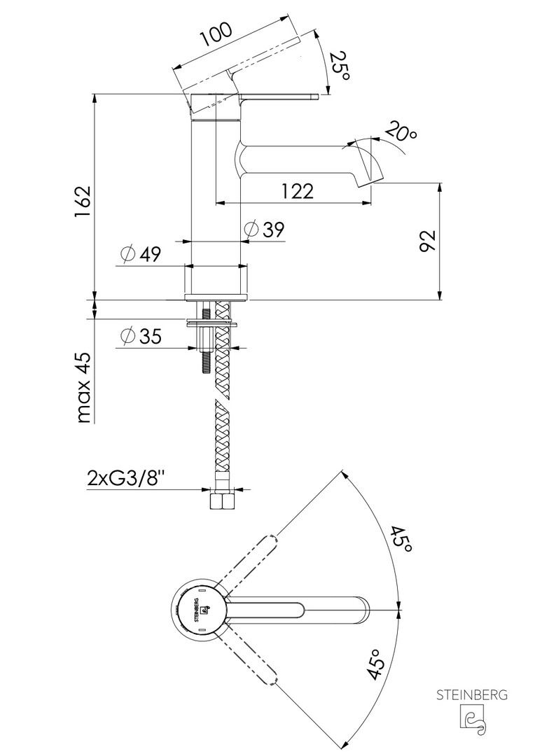 Steinberg Waschtisch-Einhebelmischer Serie 341 Ausladung 122mm, mit Ablaufgarnitur 1 1/4", chrome W933039