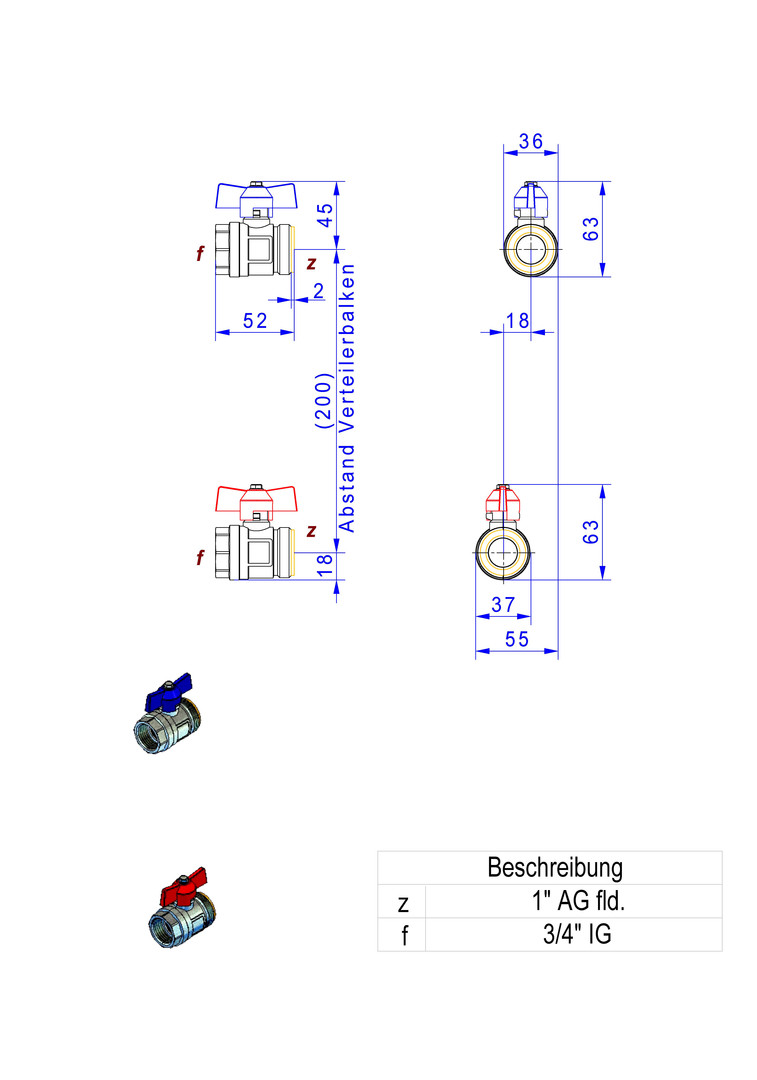 ohne WMZ, Absperrkugelhähne im Vor- und Rücklauf, max. Betriebsdruck 6 bar, max. Betriebstemperatur 80 °C, Länge 52 mm, Kvs-Wert 4,35 m³/h, Primäranschluss G 3/4 IG