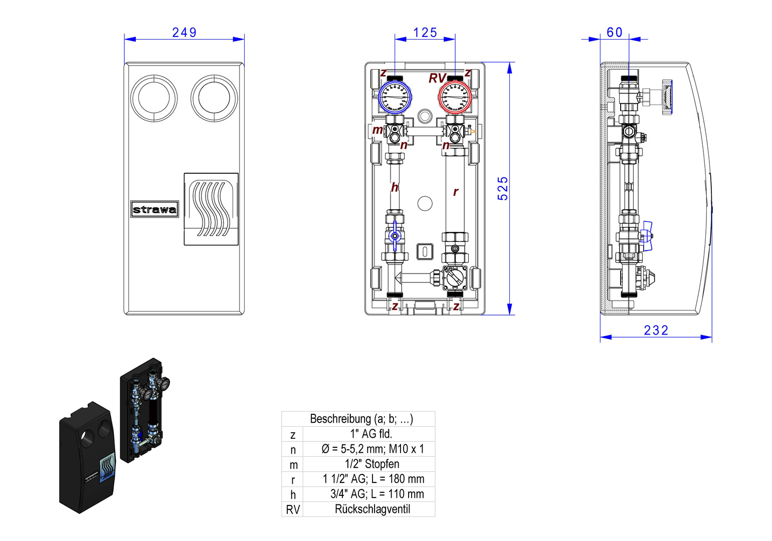 Strawa Aufbaugruppe strawi 125-25 MK MK0-WMZ-180, geregelt, mit Pumpenpassstück und Mischer