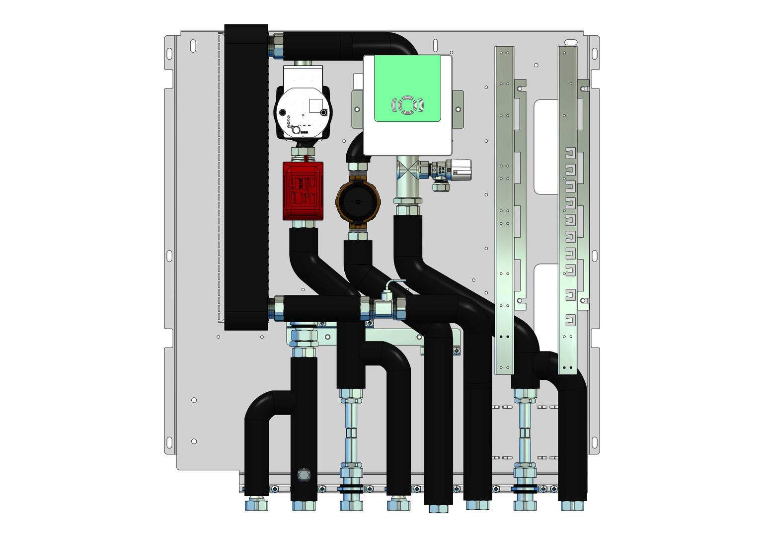 Heizungsseite bestehend aus: Plattenwärmeübertrager (PWÜ) kupfergelötet (Cu) oder edelstahlgelötet (VA), Pulsweitenmodulierende Hocheffizienzpumpe Wilo (W) Typ Para 15-130/8-75/ IPWM-12, Zonenventil DN 20 zur Absperrung der Frischwasserstation, Wärmezählerpassstück variabel 1" AG flachdichtend (Länge 130 mm) oder 3/4" AG flachdichtend (Länge 110 mm), Fühlereinbaustück direktfühlend Ø 5-5,2 mm M10x1 IG (für Fabrikate Ista Sensonic, Allmess V-Lite, Pollux Com E, Techem ? Tech, Minol M, Rossweiner, ABB, Entec, Molline), zusätzlicher Hochtemperaturabgang im Vor-und Rücklauf für den Anschluss von statischen Heizflächen, z.B. Heizkörper, Verrohrungsmaterial Edelstahl 1.4301 (DIN EN 10088), Trinkwasserseite bestehend aus: Plattenwärmeübertragerleistung bis 102 kW (modellabhängig), Rückschlagklappe, Impulsgeber, Wasserzählerpassstück variabel 1" AG flachdichtend (Länge 130 mm) oder 3/4" AG flachdichtend (Länge 110 mm), optional mit Zirkulation mit Zirkulationspumpe ecocirc PRO 13-1/940-01 inkl. Sicherheitsventil und Abblaseleitung, Verrohrungsmaterial Edelstahl 1.4401 (DIN EN 10088), Frischwasserregler bestehend aus: mit Friwara Standardregler 1.0, Trinkwarmwassertemperatur einstellbar von 45-60° Grad, Zirkulationsfunktionen (Zeitintervall), Komfortschaltung für Warmhaltung