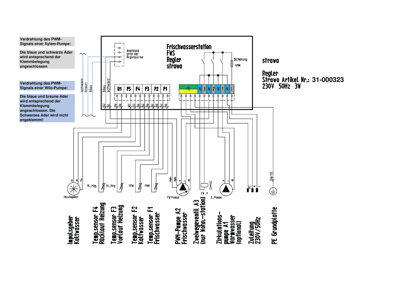als Kompaktstation, bestehend aus: Schrank: Unterputz- oder Aufputzausführung, aus feuerverzinktem Stahlblech und alle sichtbaren Teile in weiß RAL 9016, alle Halterungen mit Schalldämmeinlage, UP-Schrank 732 x 938 x 160-220 mm, AP-Schrank 706 x 916 x 180 mm, Anschlussleiste: Kugelhähne DN 25 (1" AG flachdichtend), Zirkulationskugelhahn DN 20 (3/4" IG), Anschlussleiste 5-fach: PVL-PRL-TWW-ETWK-ATWK, Anschlussleiste 6-fach it Zirkulation (Z): PVL-PRL-Z-TWW-ETWK-ATWK, Primär-Rücklauf optional mit Strangregulierventil Ballore Vario, Frischwassermodul Heizungsseite: Plattenwärmeübertrager (PWÜ) kupfergelötet (Cu) oder edelstahlgelötet (VA), Pulsweitenmolulierende Hocheffizienzpumpe Wilo (W) Typ Para 15-130/8-75/IPWM-12, Zonenventil DN 25 zur Absperrung der Frischwasserstation, Wärmezählerpassstück variabel 1" AG flachdichtend (Länge 130 mm) oder 3/4" AG flachdichtend (Länge 110 mm), Fühlereinbaustück direktfühlend, Ø 5-5,2 mm M10x1 IG (für Fabrikate ISTA Sensonic, Allmess V-Lite, Pollux Com E, Techem Tech, Minol M, Rossweiner, ABB, Entec, Molline), Verrohrungsmaterial Edelstahl 1.4301 (DIN EN 10088), Filterkugelhahn im Primär-Vorlauf, Frischwassermodul Trinkwasserseite: Plattenwärmeübertragerleistung bis 102 kW (modellabhängig), Rückschlagklappe, Impulsgeber, Wasserzählerpassstück variabel 1" AG fld. (Länge 130 mm) oder 3/4" AG flachdichtend (Länge 110 mm), optional mit Zirkulation mit Zirkulationspumpe ecocirc PRO 13-1/940-01 mit Sicherheitsventil und Abblaseleitung, Verrohrungsmaterial Edelstahl 1.4401 (DIN EN 10088), Frischwasserregler: mit Friwara Standardregler 1.0, Trinkwarmwassertemperatur einstellbar von 45-60 °C, Zirkulationsfunktionen (Zeitintervall), Komfortschaltung für Warmhaltung des Plattenwärmeübertragers