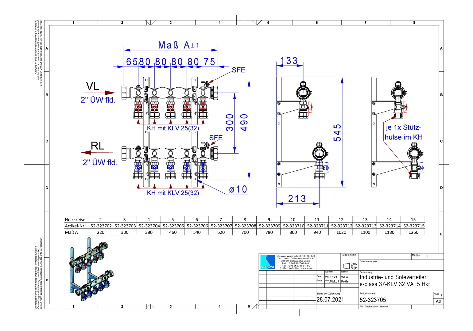 Strawa Industrie-/Soleverteiler e-class 37-KLV 32 2 Heizkreise, Baulänge 215 mm, Anschluss horizontal W692673