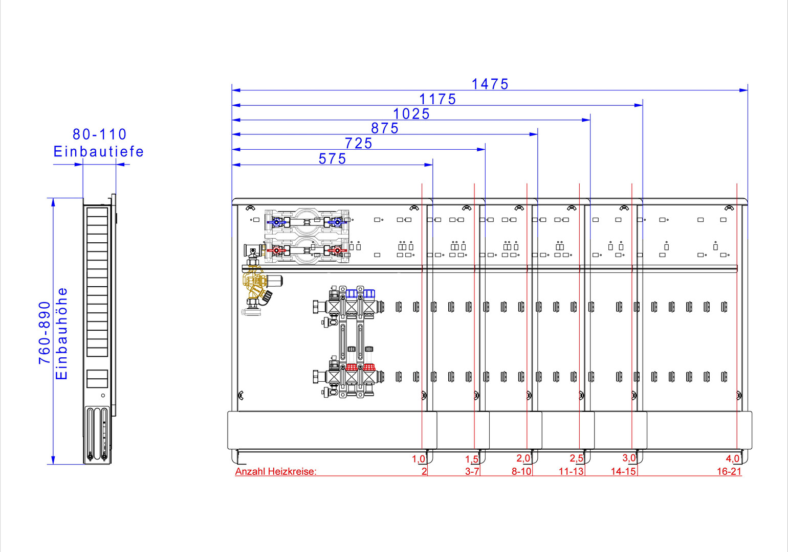 mit Verrohrung für den Anschluss an Wasserzählereinbaustrecken W2, Anschluss Trinkwasser warm und Zirkulation 3/4" IG