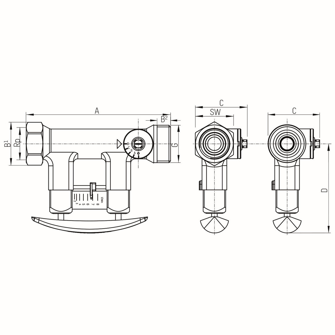 TACONOVA Abgleichventil SETTER Bypass Solar 130 DN 20, 1" x 1" AG, 2-12 l/min., Messing W812321