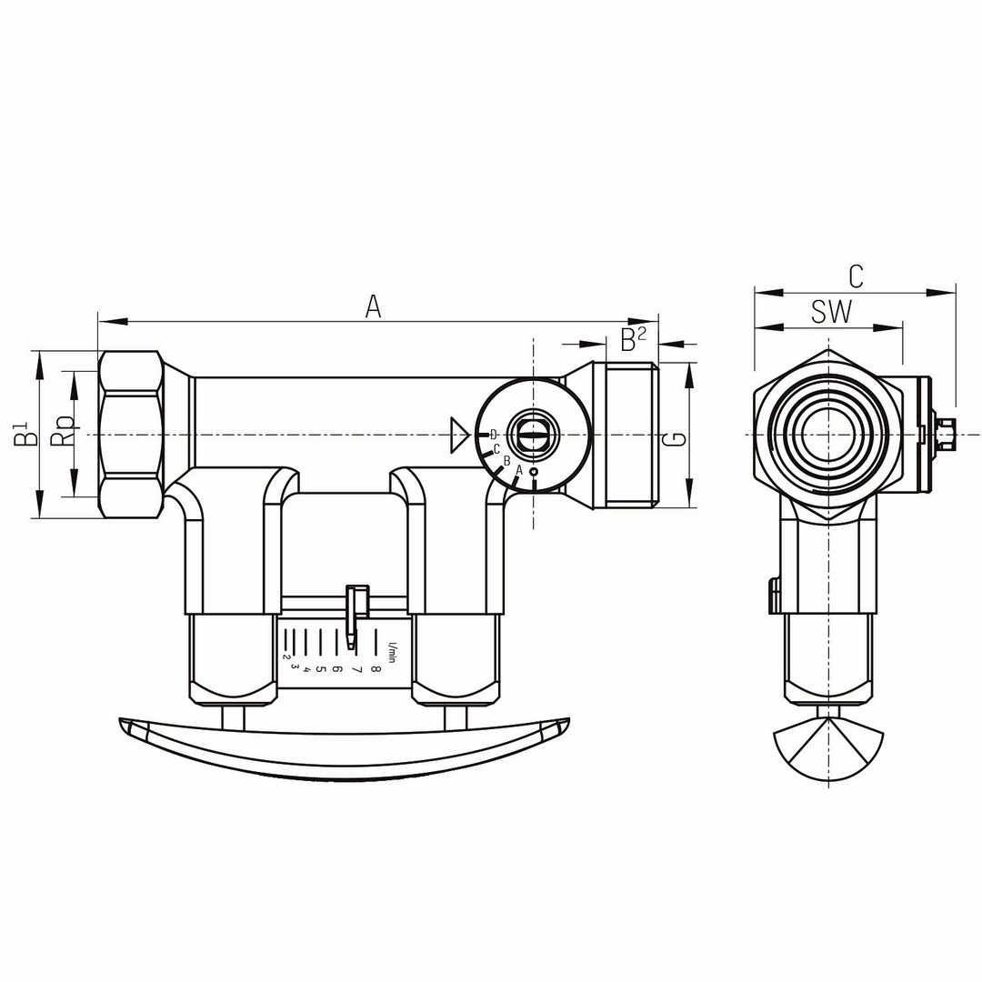 TACONOVA Abgleichventil TacoSetter 1/2" IG x 1/2" IG, 2-8 l/min, Messing 265655