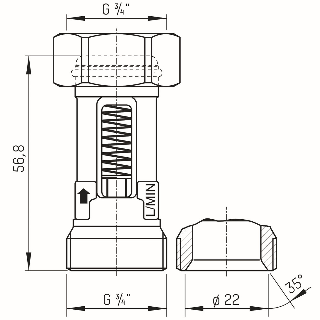TACONOVA Durchflussmesser FLOMETER 2-8 I/min., G 3/4xR 3/4, Messing W812350