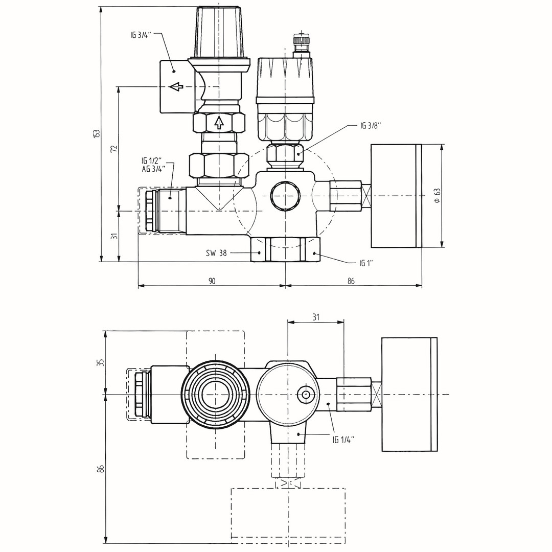 TACONOVA Sicherheitsventil Tribloc 2,5 bar, DN 25, Rp 1