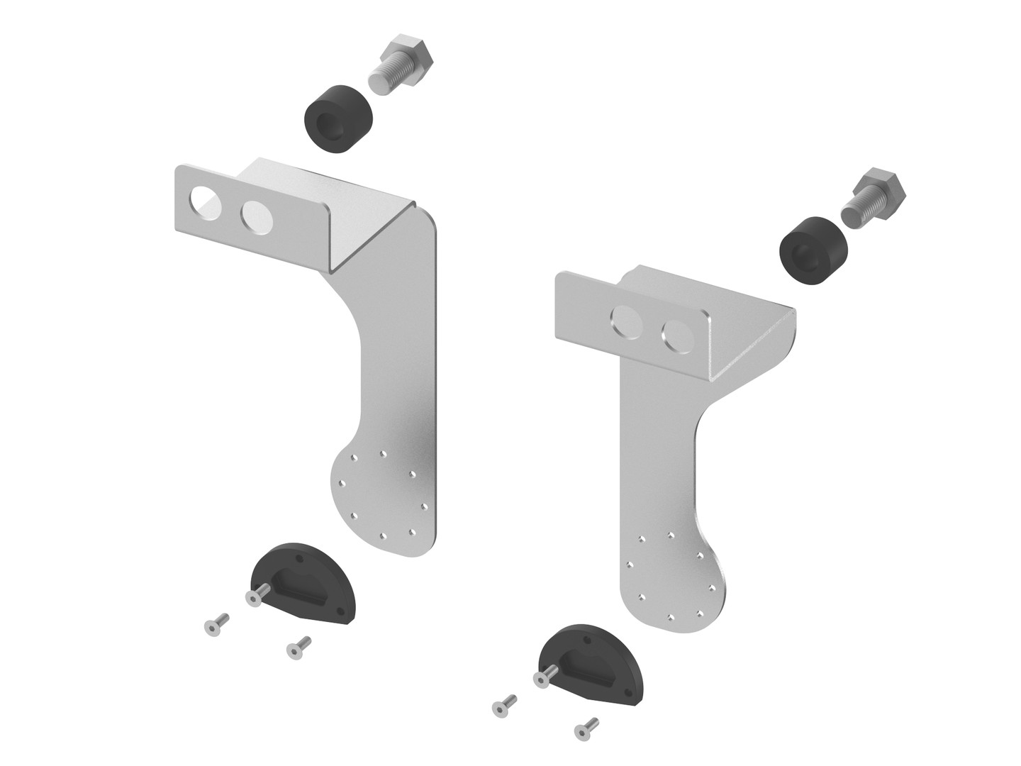 schallentkoppeltes Rohbauset zur Vorrüstung von Trockenbaumodulen mit Octa II- und Base 8-Spülkasten für den Wasseranschluss eines Dusch-WC, Rohbauset bestehend aus: Haltebleche für Warm- und Kaltwasseranschluss, Schallschutzelemente für Wandscheiben, Befestigungsschrauben für Wandscheiben, zwei Schrauben M 12 x 20 mit Distanzhülsen