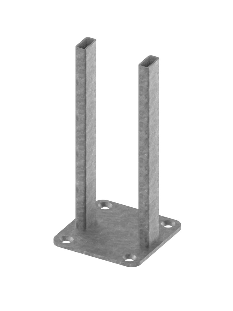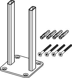 Einsteckhalter für TECEprofil Profilrohre, zur Errichtung von einschaligen TECEprofil Trennwänden, die Befestigung erfolgt auf massiven Rohfußböden und an massiven Wänden, bestehend aus Doppelhalter aus beschichtetem Stahl und Befestigungsmaterial