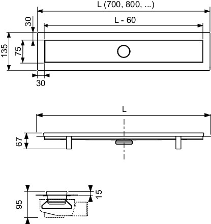 TECE Duschrinnenset TECElinus Länge 800 mm, straight