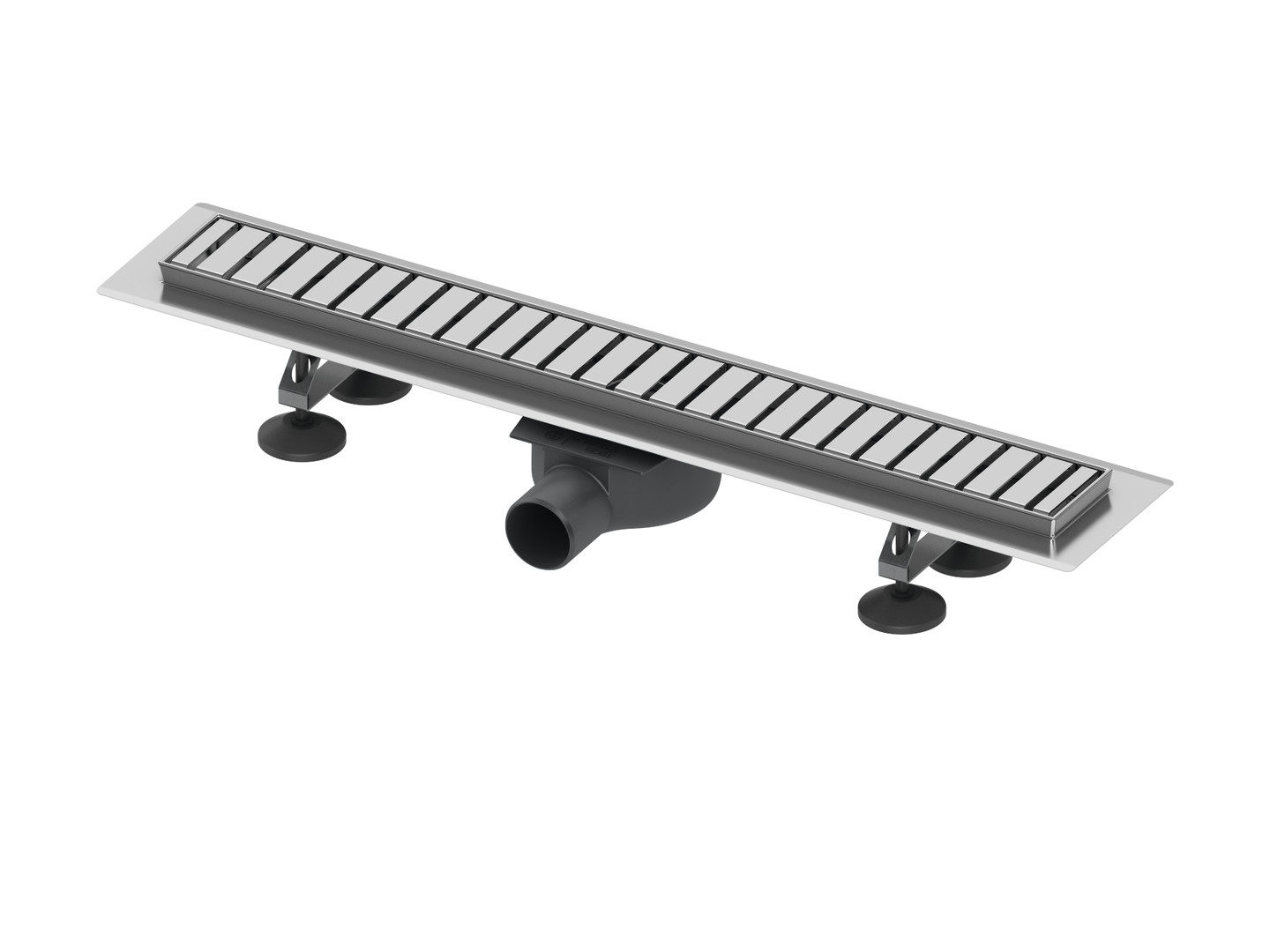 Set besteht aus, Duschrinne mit Dichtmanschette mit Rost, Ablauftopf flach und Montagefüße