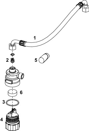 Ergänzung zum Dusch-WC, für eine vereinfachte Entkalkung, bestehend aus: Entkalkungsgehäuse aus Messing, Entkalkungsstopfen mit Aufnahme für Entkalkungstab mit Drehhilfe, Entkalkungstabs (4 Stück), Panzerschläuche, Entkalkungskappe für Duschstab