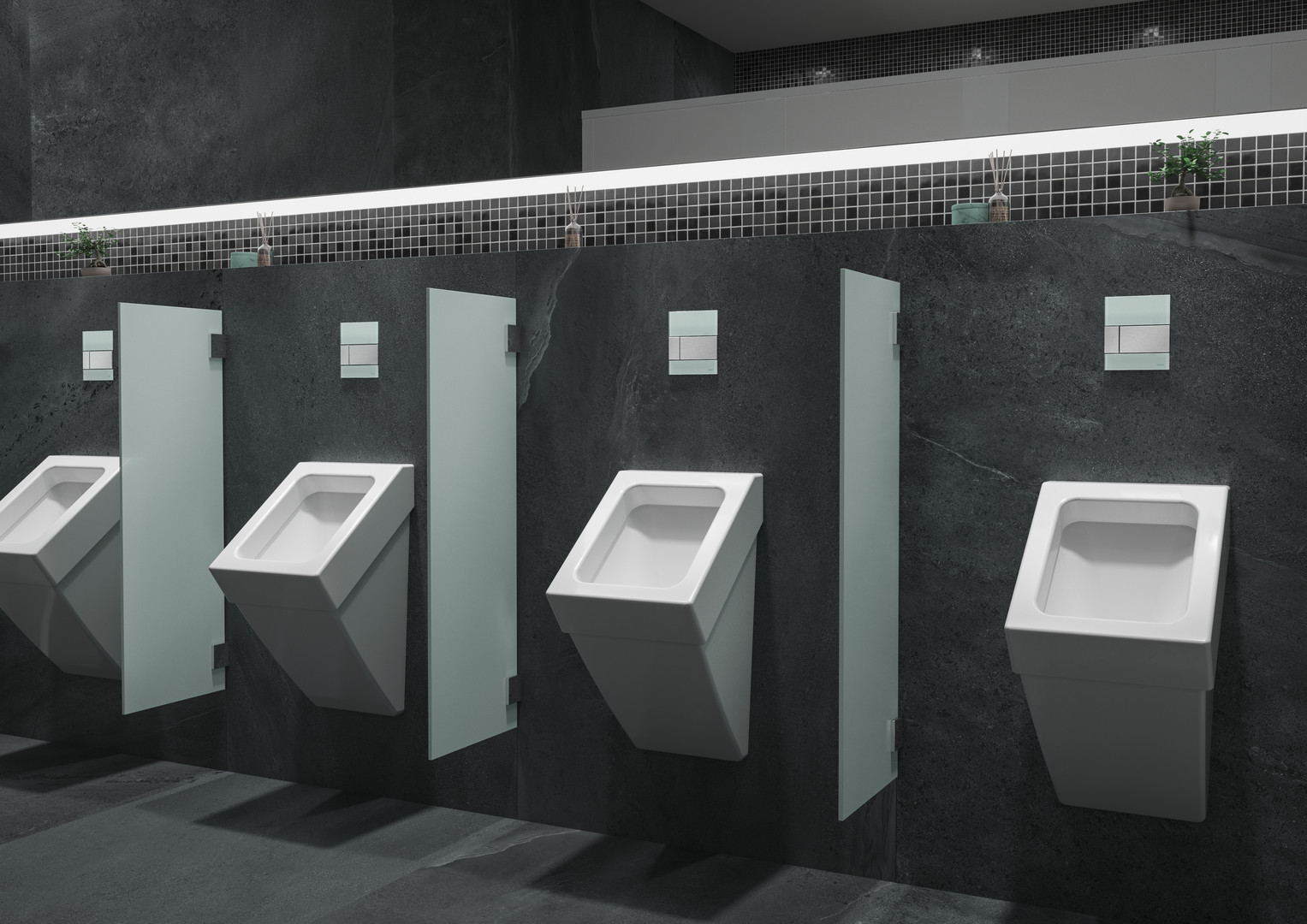 TECE Urinal-Betätigungsplatte TECEsquare Glas weiß, Tasten Edelstahl gebürstet, mit Kartusche W356075
